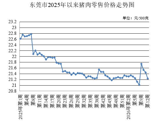 第12周,生猪出场价格为每公斤11.20元,与上周持平。总肉批发均价为每500克10.25元,较上周下降1.91%。