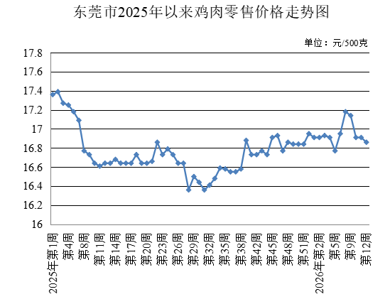 第12周,监测的牛肉农贸市场零售均价为每500克47.95元,较上周上升0.08%。鸡肉农贸市场零售均价为每500克16.86元,较上周下降0.30%。